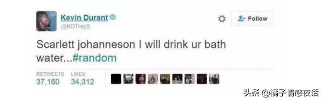 后来,当斯嘉丽与喜剧演员科林·乔斯特结婚时,网友又去调侃杜兰特:洗澡水你又没得喝了。