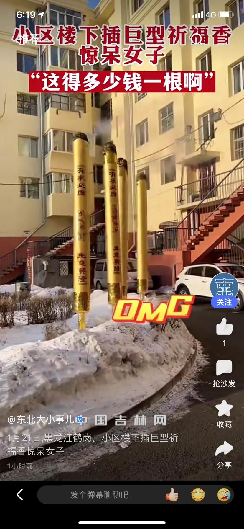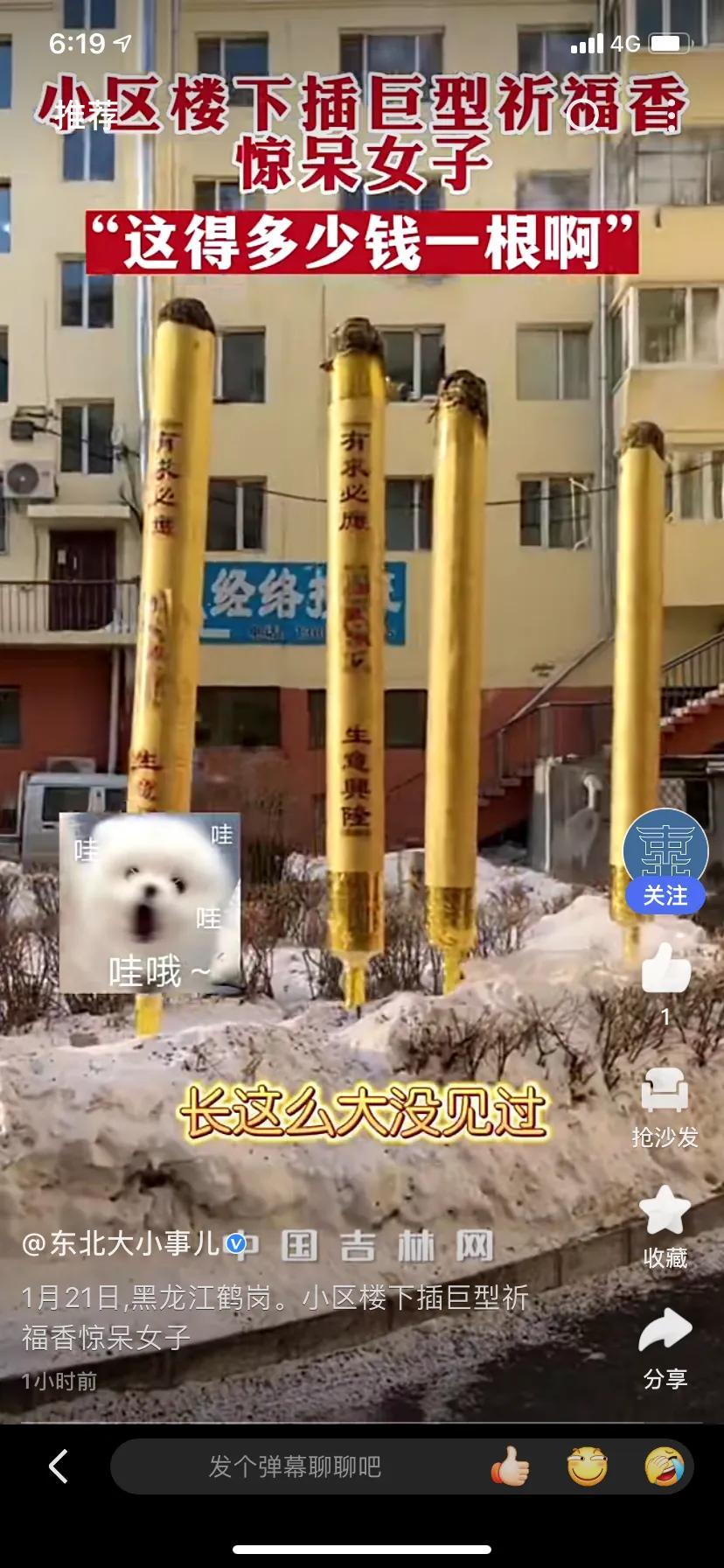 根据视频内容我们可以看到,有4根香插在雪地上,大概有三四米高。以前也有出现这种情况,但今年这四根确实太引人瞩目了,同时也好奇这四根香的价格大概要多少。